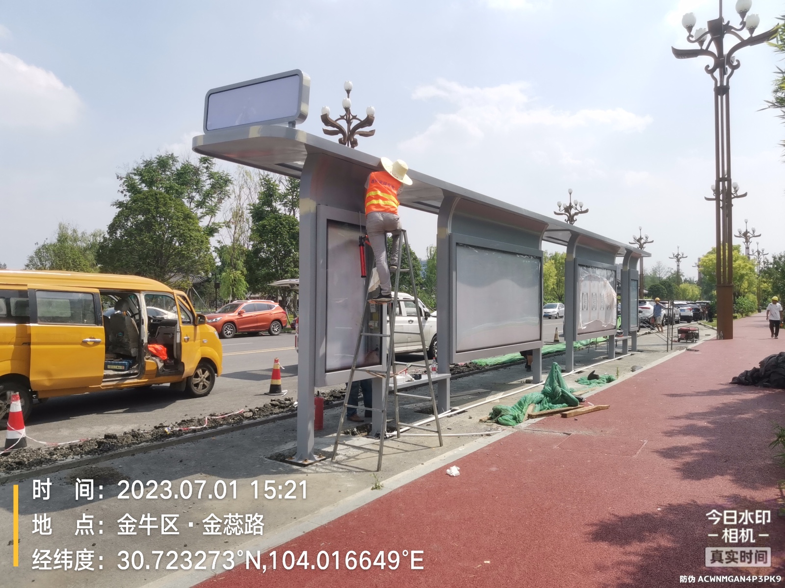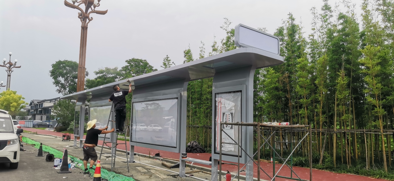 由我公司承建的該款站臺,在過去開放式一字結構的基礎上,綜合運用頂棚氛圍燈光、站名燈箱、電子報站系統(tǒng)、便民座凳等設施。簡約不簡單,即使是一座普通的鋼構站臺,也可以注入一抹亮色和溫暖。